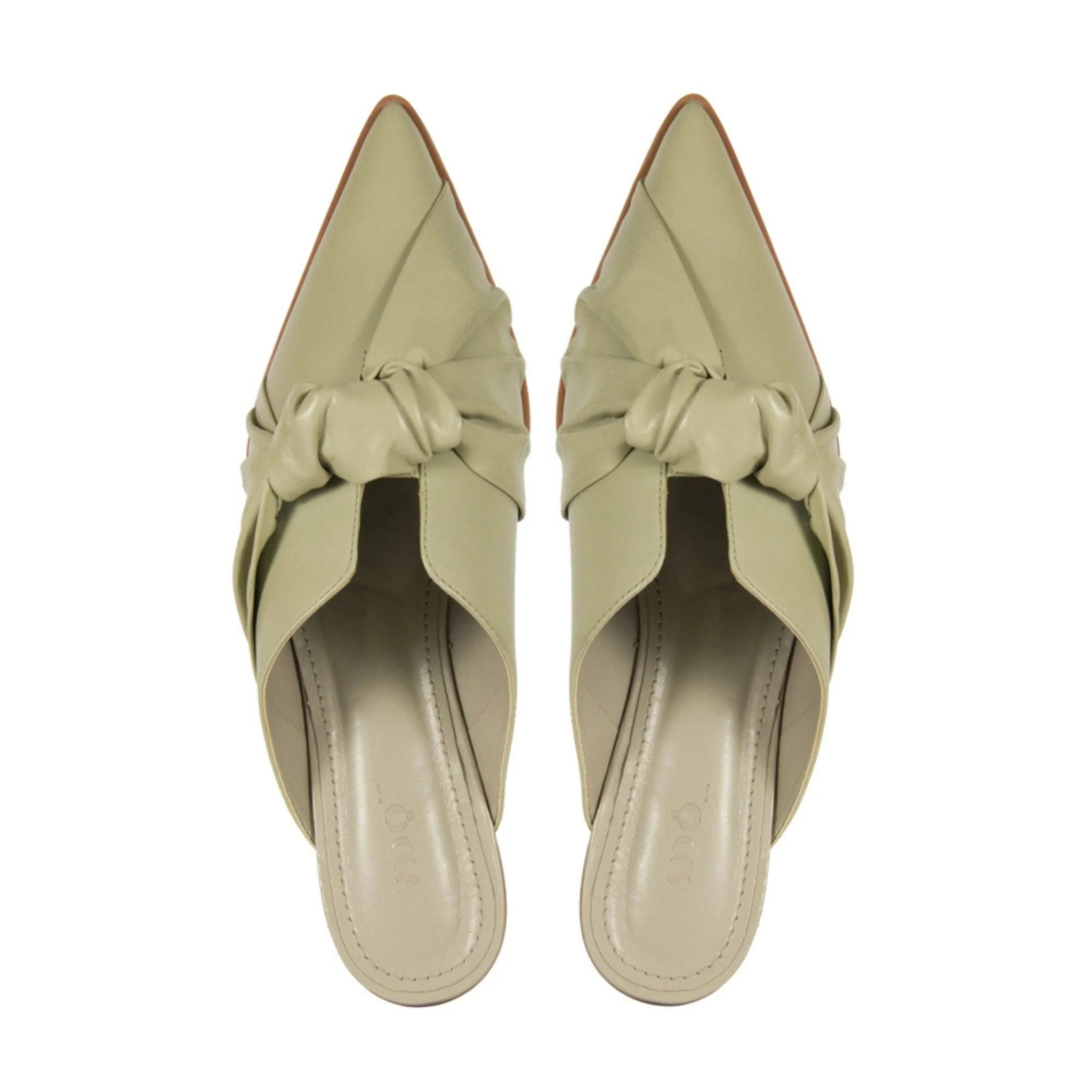 A Mule Camille da Adô é um convite à elegância artística. Seu nó escultural, torcido à mão, transforma um clássico mule em uma peça autoral e sofisticada. O couro macio em tom cinza fendi envolve o pé com conforto, enquanto o bico fino alonga a silhueta em um equilíbrio entre modernidade e atemporalidade.