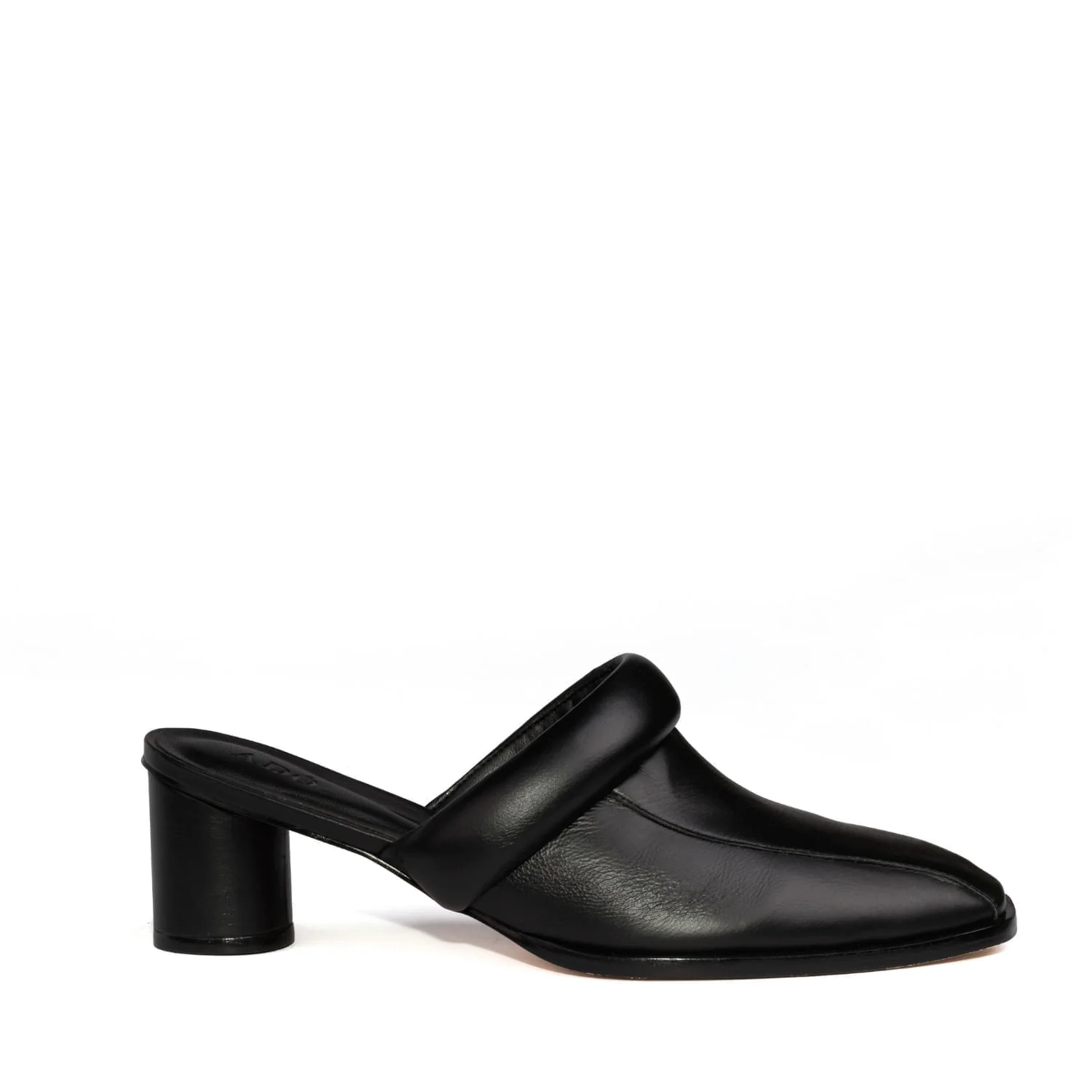 Design: Estrutura mule com cabedal moderno e detalhe volumoso