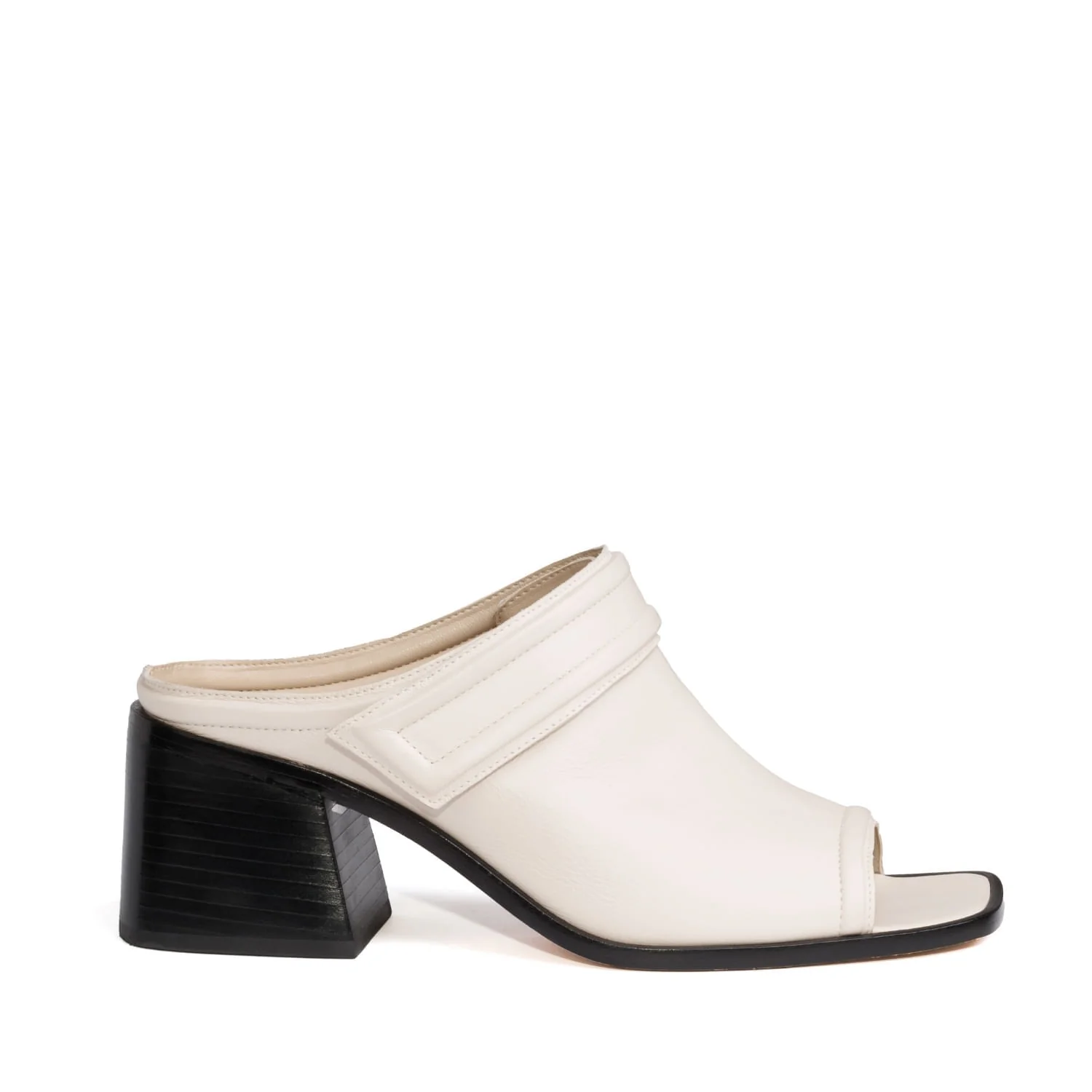 A Mule Tarsila foi criada para dias quentes em que o conforto não abre mão da elegância. Seu shape cobre o pé, deixando os dedos à mostra e a parte traseira livre, característica do modelo. O charme está na lingueta com volumes, que adiciona textura e originalidade. O salto bloco exclusivo, em laminado preto, traz modernidade, estabilidade e sofisticação, enquanto a vira preta finaliza com estilo.