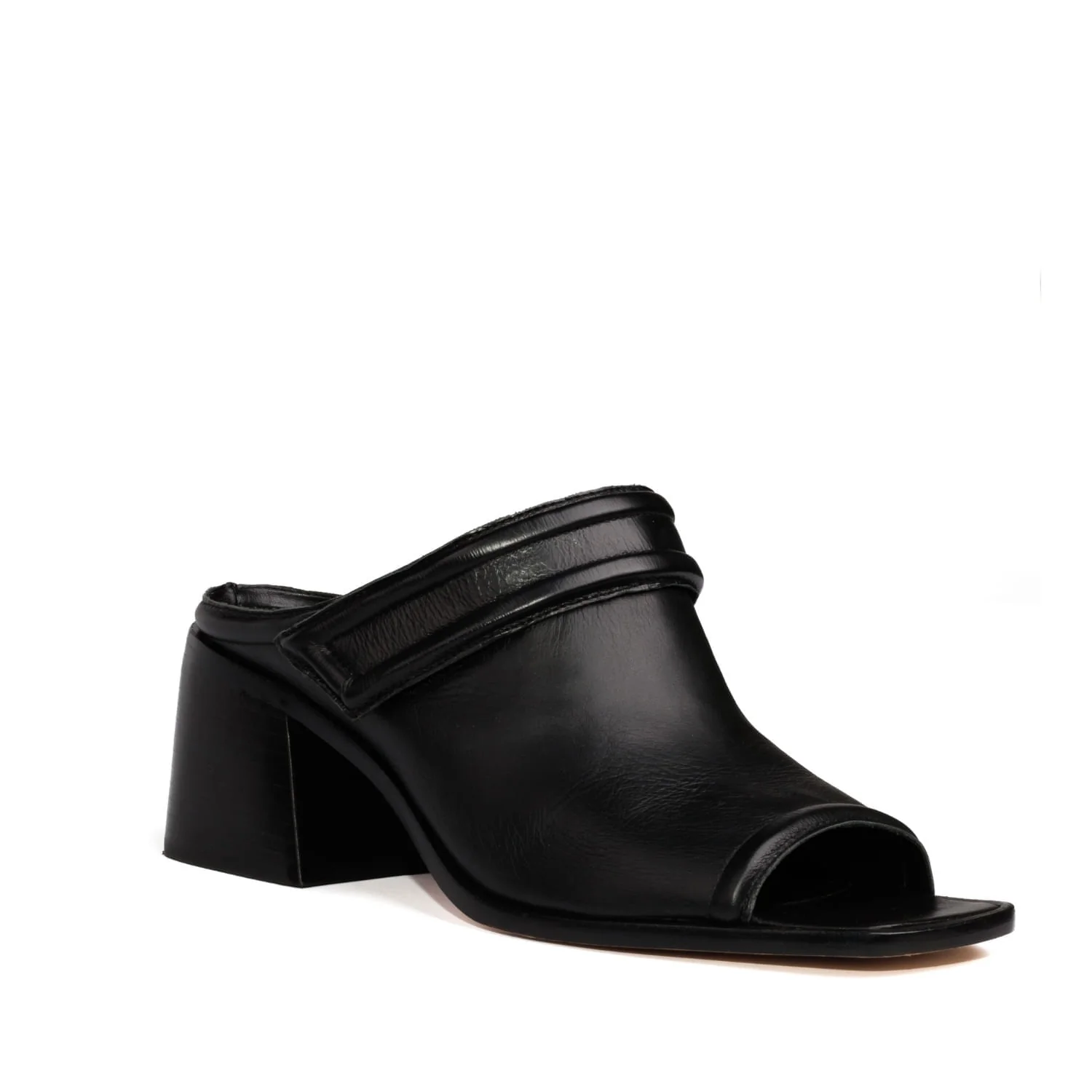 A Mule Tarsila foi criada para dias quentes em que o conforto não abre mão da elegância. Seu shape cobre o pé, deixando os dedos à mostra e a parte traseira livre, característica do modelo. O charme está na lingueta com volumes, que adiciona textura e originalidade. O salto bloco exclusivo, em laminado preto, traz modernidade, estabilidade e sofisticação, enquanto a vira preta finaliza com estilo.